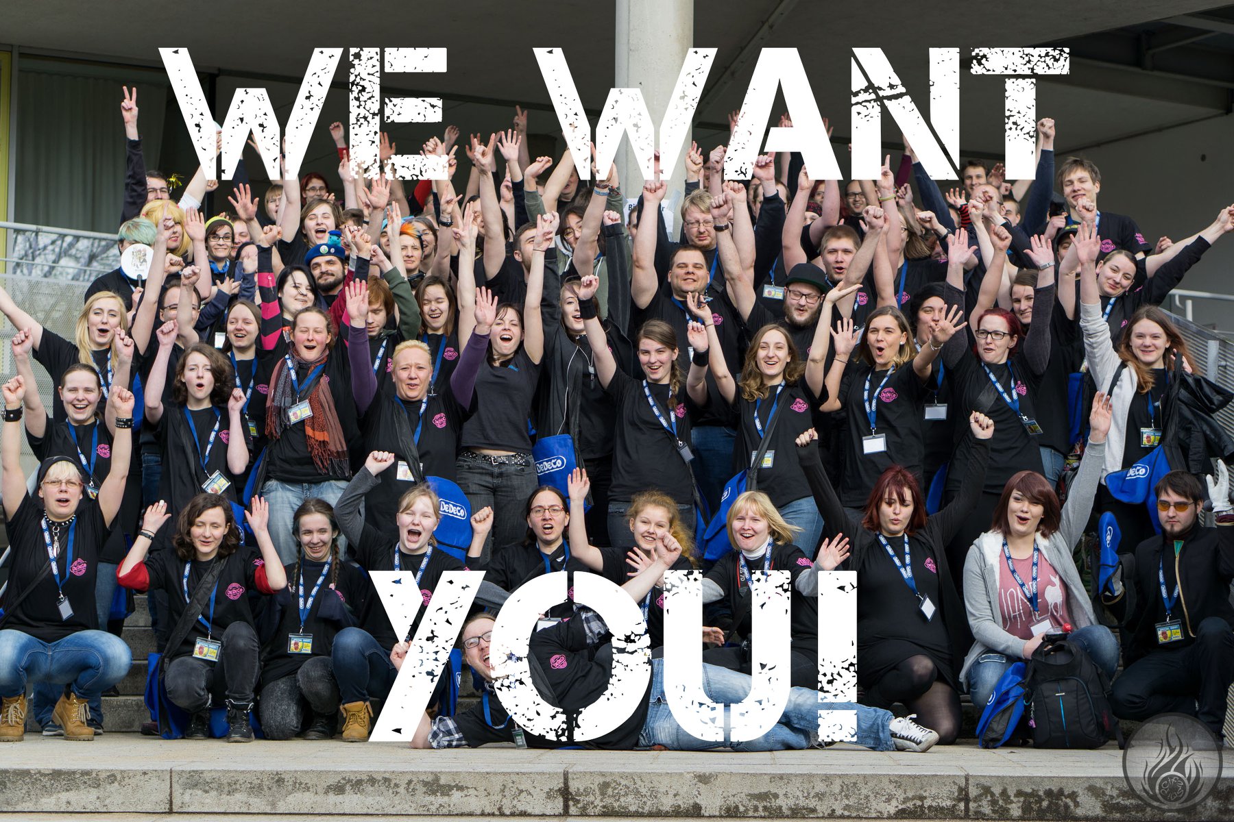 Natürlich werden auch wieder fleißig Helfer für die Con gesucht.