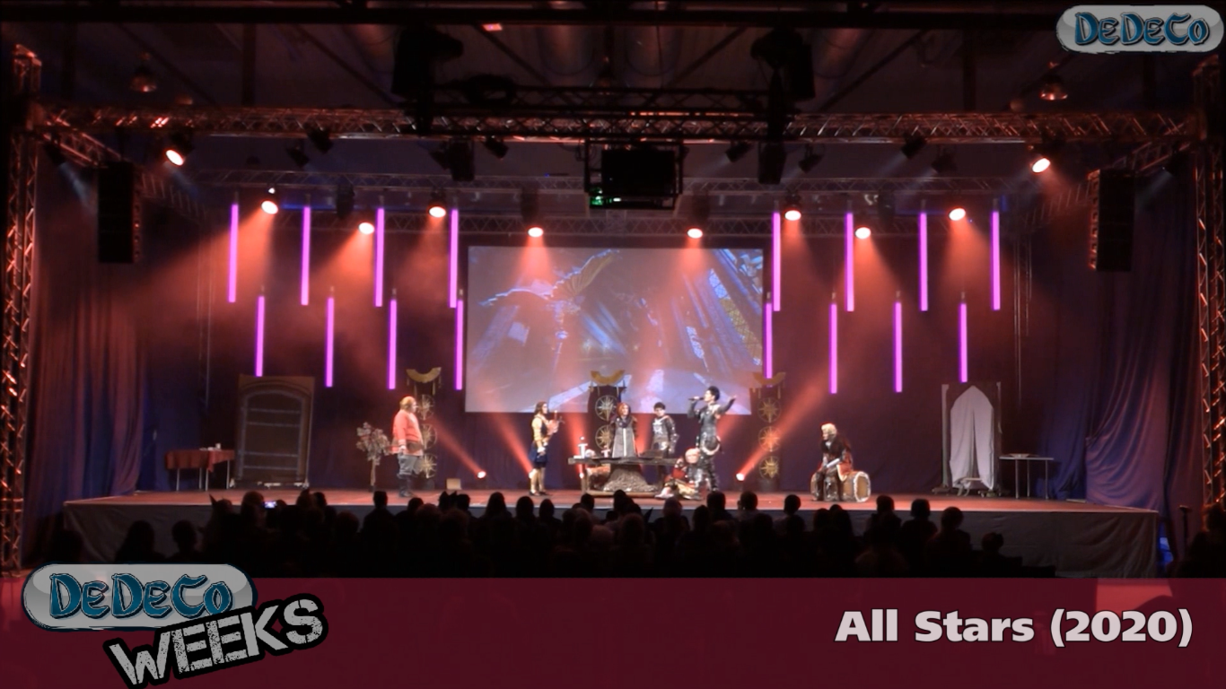 Von der integrierten Bühne mit einer ungefähren Fläche von 8 x 6 m wuchs und wuchs unsere Stage, bis sie ihrem Namen alle Ehre machen konnte: Auf der DeDeCo 2020 maß unsere Große Bühne 16 x 7 m. Wo wir 2012 das Licht noch durch drei Lampen und einen Techniker realisierten, der an der Seite der Bühne den Lichtschalter betätigte, gab es 2020 Moving Heads, Washs, Frontlicht, Hazer, Nebel und unsere charakteristischen LED-Säulen.