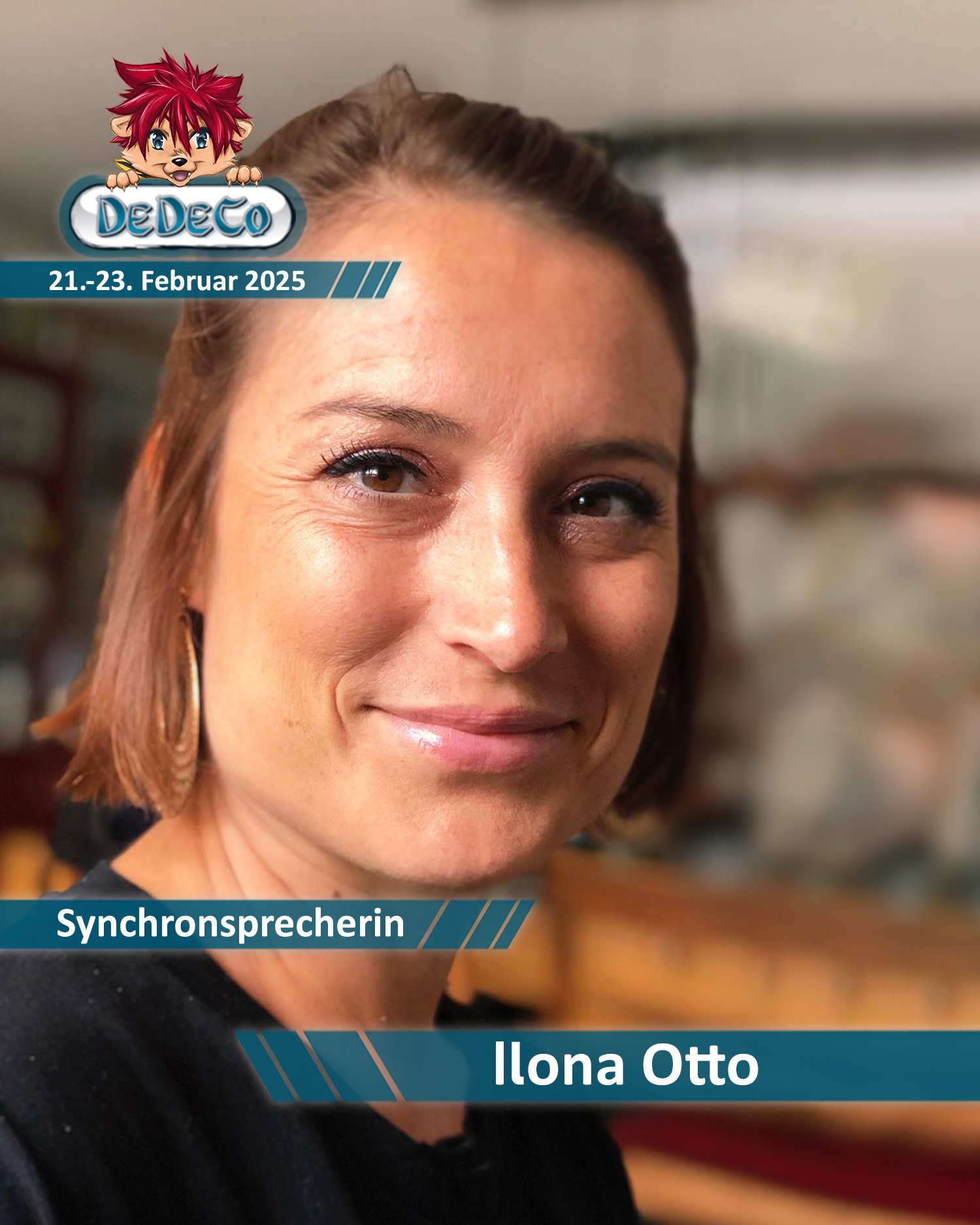 Bereits seit Jahren im Synchronsprecherbusiness tätig und nun endlich auch bei uns zu Gast. Begrüßt gemeinsam mit uns die Synchronsprecherin Ilona Otto auf der DeDeCo 2025. Viele von uns kennen sie als Barbie aus den Zeichentrickfilmen und als Layla aus Winx Club. Aber auch T.K aus Digimon Adventure lieh sie ihre Stimme. Schwelgt gemeinsam mit uns in Erinnerungen und lasst uns mehr über ihre Zeit als Synchronschauspielerin herausfinden.
